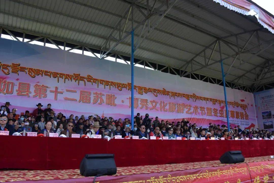 自治区人大常委会原党组副书记、副主任嘎玛,自治区人社厅副厅长达娃次仁,那曲市委常委、比如县委书记陈刚,那曲市委常委、索县县委书记庄存伟,那曲市委常委、巴青县委书记张军,那曲市副市长加多,宁波市纪委监委驻宁波市农业农村局纪检组组长蒋大忠,宁波市对口支援与区域合作局组织人事处副处长(主持工作)胡龙玉,宁波市对口支援与区域合作局组织人事处三级调研员王天琴,浙江省援藏指挥部副指挥长、比如县委常务副书记叶秀贝,比如县委常委、常务副县长石坚以及自治区教育厅、自治区冬虫夏草协会、那曲市政府秘书处、那曲市人社局、那曲市文化和旅游局等领导、那曲市各兄弟县领导、宗教人士代表出席开幕式。比如县委副书记、县长边巴次仁代表县委、县政府致开幕辞并宣布比如县第十二届苏毗·娜秀文化旅游艺术节暨冬虫夏草展销会盛大开幕。